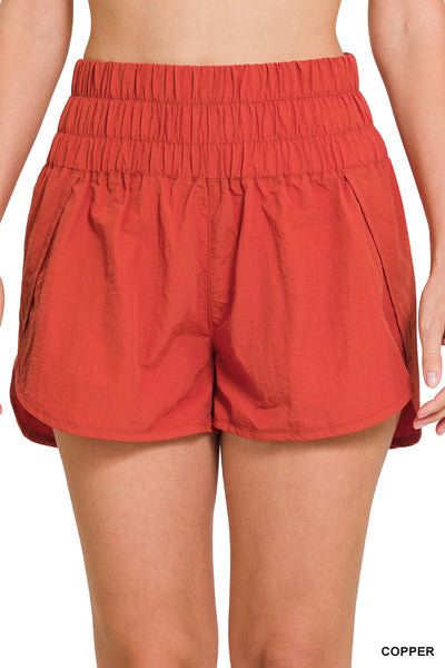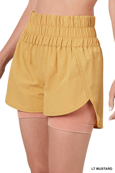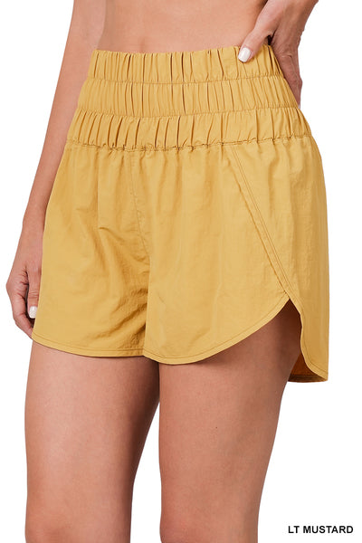 Zenana Windbreaker Smocked Waistband Running Shorts