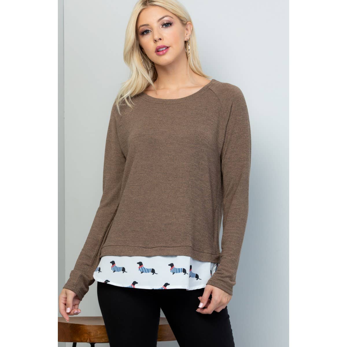 Get ready for some paws-itively stylish looks with this French dog print sweater! This playful top features adorable pups in French attire and will keep you cozy and chic all season long. Perfect for dog lovers and fashionistas alike. Woof! 65% Cotton 35% Polyester