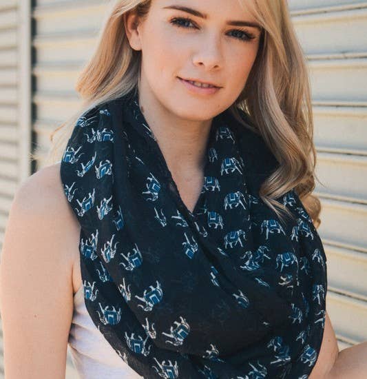 This Bohemian elephant print infinity scarf is a versatile accessory that can be looped around the neck in various styles. The scarf features a charming elephant print, adding a touch of whimsy to any outfit. The infinity design allows for endless styling possibilities, making it a go-to piece for both casual and dressy occasions. Dimensions 33" x 35" 100% Polyester