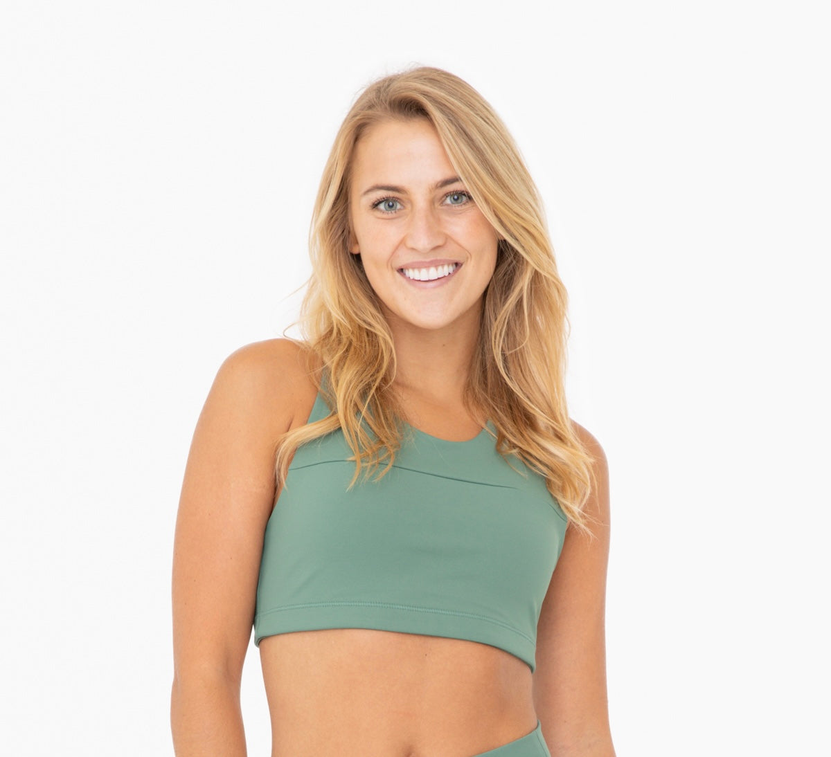 Featuring the classic silhouette on the front with a yoke for a sporty look, this Mono B sports bra has a pair of overlaying straps on the back and closes with a hook. 75% Polyester, 25% Spandex. Removable bra pads. Moisture wicking. Four-way stretch.