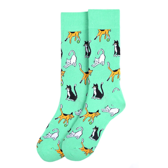 Who said that socks have to be boring? Colorful, novelty, and funny socks are the way to go. They could be your perfect gift choice for the dog and cat lovers on your list, or enjoy them for yourself! 70% Cotton 25% Polyester 5% Spandex. Men's sock size 10-13.